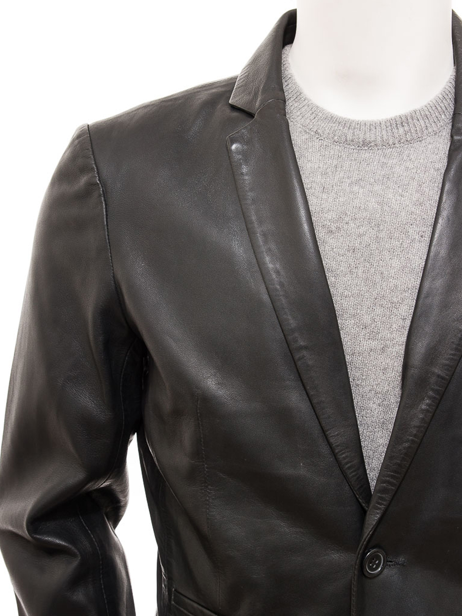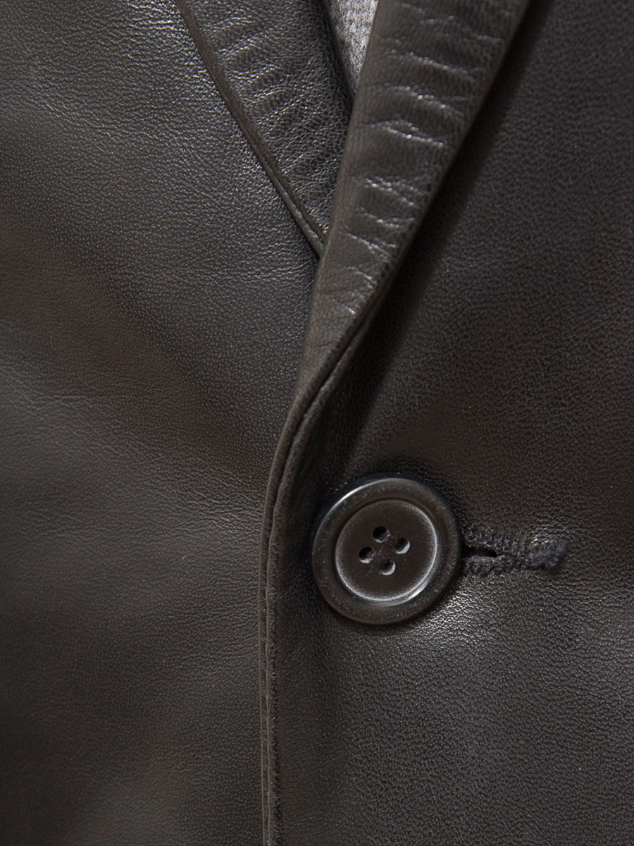 - Sheep nappa leather gives this jacket a wonderful relaxed appearance as the natural, tonal character of the skin is visible. This style is single breasted with two buttons and slim notched lapels.