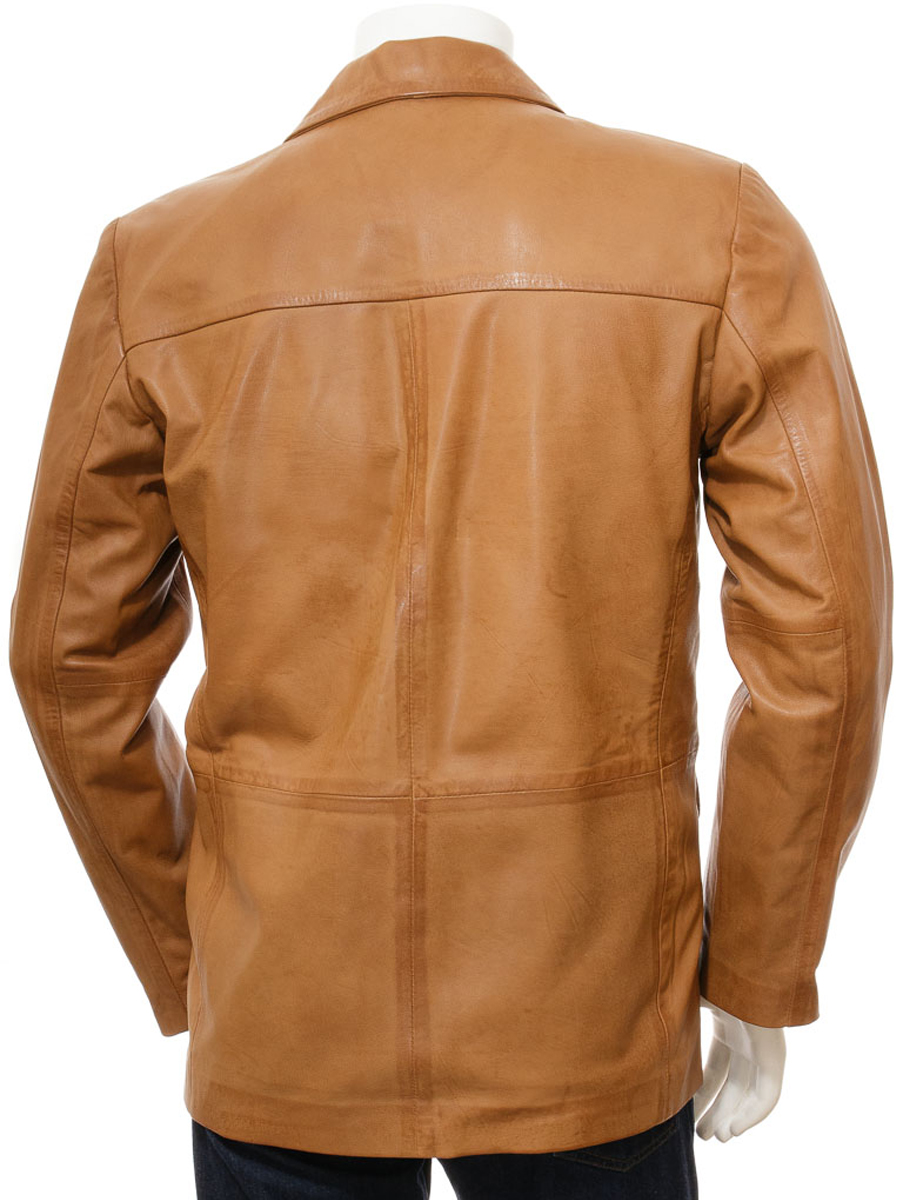 - The silhouette is slim with a high, three button break to single breasted, notched lapels. There are two flapped jet pockets on the body and the cuffs are plain with a plain back to the rear. Note also that the back consists of just two large leather panels. Cheaper blazers can use four or more smaller panels on this area.