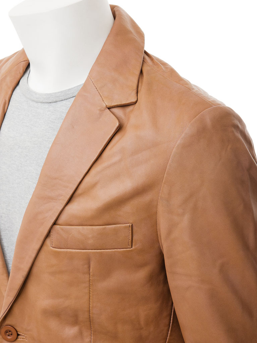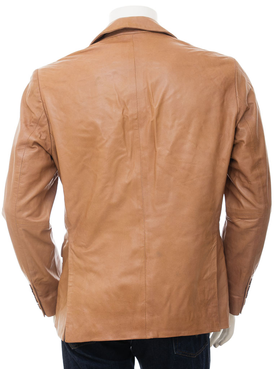 - An understated, sophisticated leather blazer in the softest, sheep, tan nappa hide.