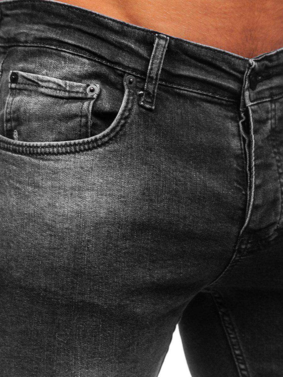 Eye-catching black jeans from the JDN collection. They are fastened with comfortable buttons and have three pockets at the front and two at the back. Fashionable shading on pockets, thighs and knees add a unique character. This type of jeans is perfect for everyday use, you can wear them for a meeting with friends or for work. They are made of pleasant to the touch material. Create a perfect match with a shirt, a sweatshirt, a jumper or a long sleeve top.