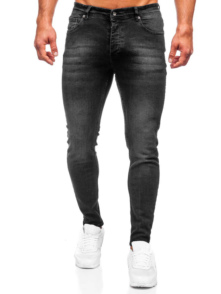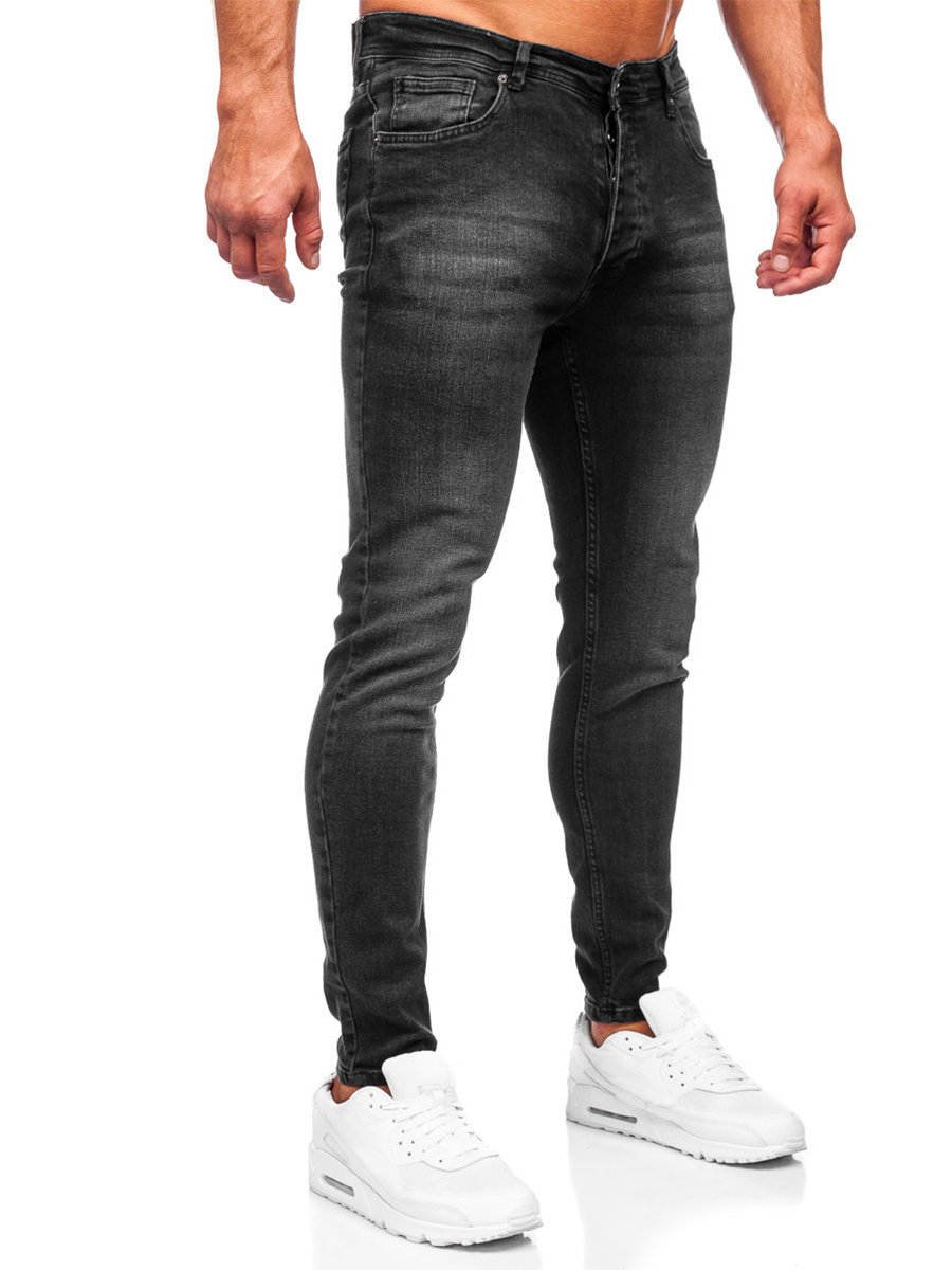Perfect black men's skinny fit jeans from the JDN collection. The jeans are fastened with buttons. This model has two pockets at the front and two at the back. There is also a decorative, small pocket at the front. They are made of the highest quality material, which makes them extremely comfortable and pleasant to the touch. Fashionable shading adds character to them. Jeans are one of the most popular trouser styles. They are comfortable, practical and always look good. They will look perfect with a sweatshirt, a T-shirt or a long sleeve top.